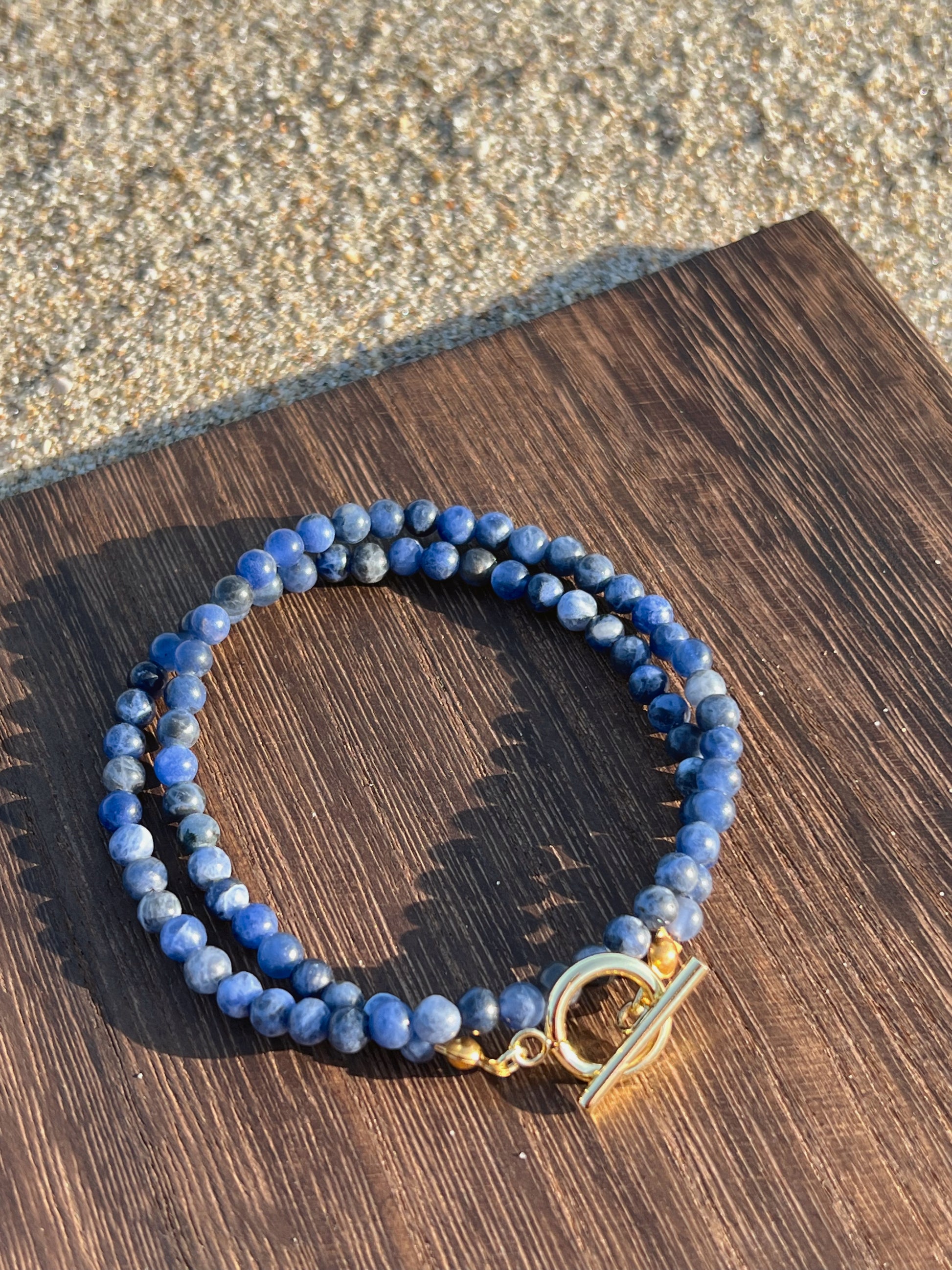 sodalite beads, 14k gold plated attachments, double wrap bracelet