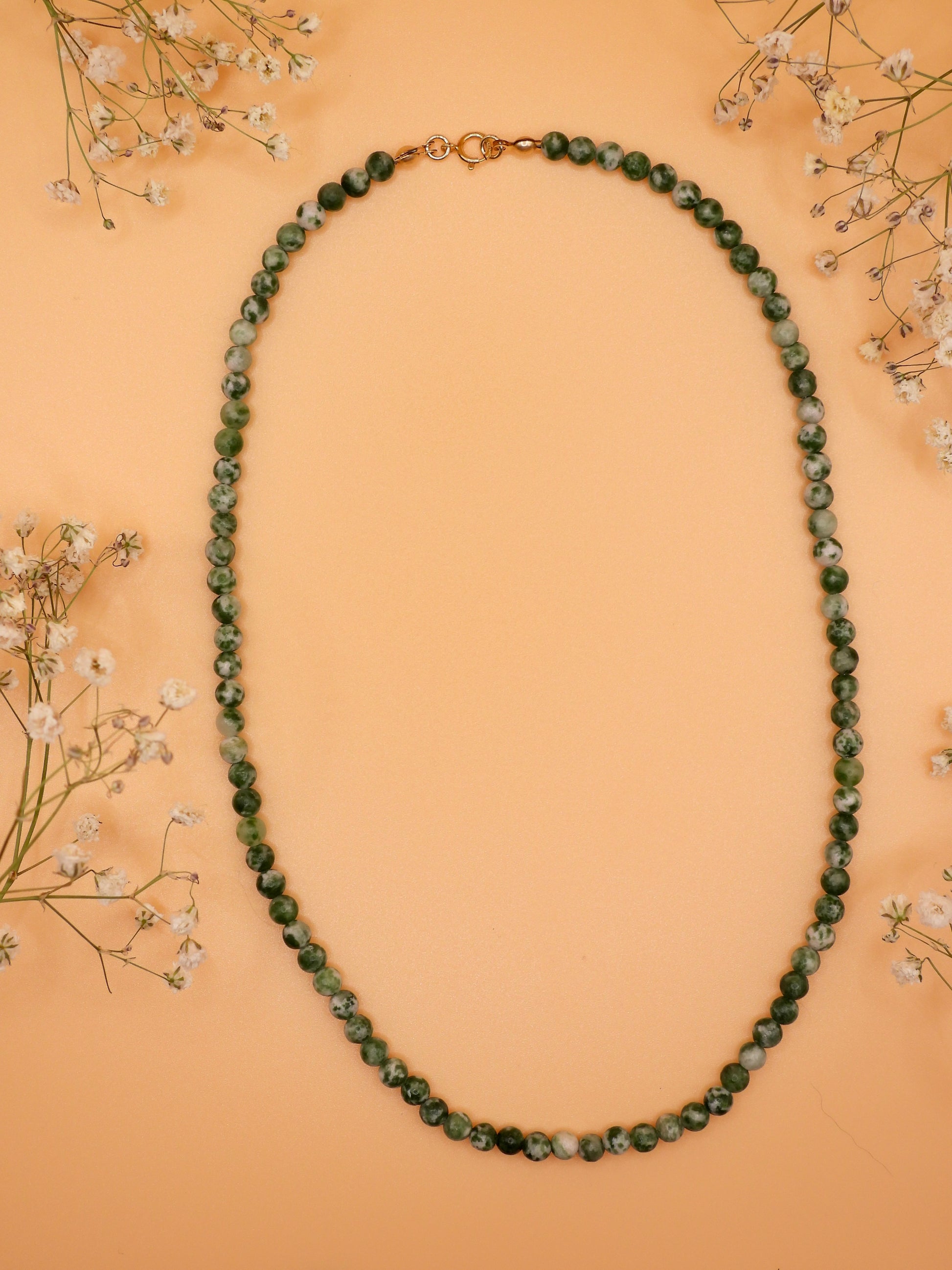 tree agate beads, 14k gold plated attachments, 16" standard, add note if you'd like to add extension chain